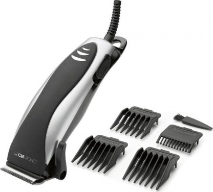 Κουρευτική μηχανή της εταιρίας Clatronic, κατάλληλη για χρήση σε περιοχές όπως τα μαλλιά, τα γενιά και το σώμα. Λειτουργεί με καλώδιο και στη συσκευασία περιέχονται 4 εξαρτήματα.