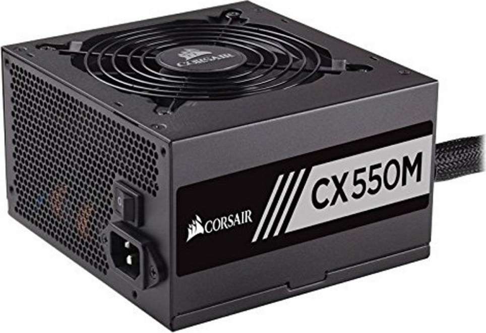 Semi-modular τροφοδοτικό Corsair CX550M, το οποίο παρέχει υψηλή ποιότητα κατασκευής, χαμηλό θόρυβο και πιστοποίηση 80 PLUS Bronze, που σημαίνει πως προσφέρει καθαρή ισχύ που φτάνει το 80% της συνολικής του απόδοσης. Διαθέτει ενσωματωμένο ανεμιστήρα 120mm.