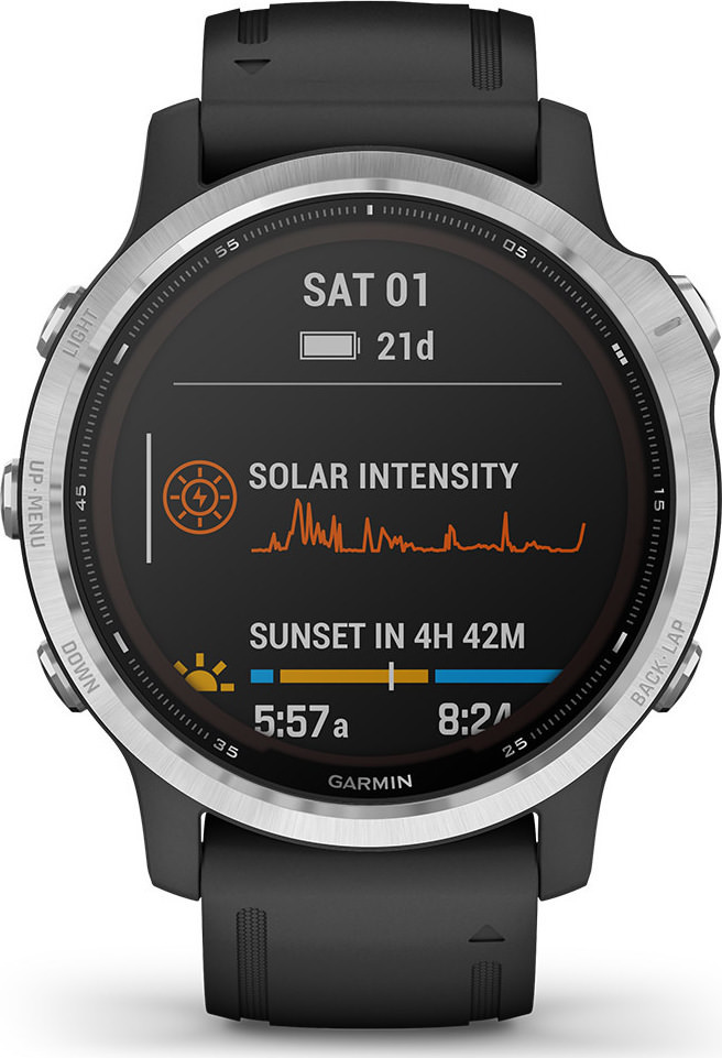 Το Garmin Fenix 6S Solar είναι ένα smartwatch με εναλλάξιμο λουράκι και μπορεί να συνδεθεί με κινητό Android ή iOS. Έχει NFC για την πραγματοποίηση ανέπαφων πληρωμών (όπου υποστηρίζεται) ή pairing μεταξύ συσκευών. Μπορεί να χρησιμοποιηθεί για κολύμβηση στη θάλασσα και μεταξύ των δυνατοτήτων του ξεχωρίζουν το GPS, η καταγραφή βημάτων και απόστασης και ο ενσωματωμένος μετρητής καρδιακών παλμών.