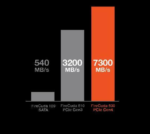 Έως 2 φορές ταχύτερος από τους SSD PCIe Gen3 NVMe™ και έως και 12 φορές ταχύτερος από τους SSD SATA — το FireCuda 530 επαναπροσδιορίζει την ταχύτητα.